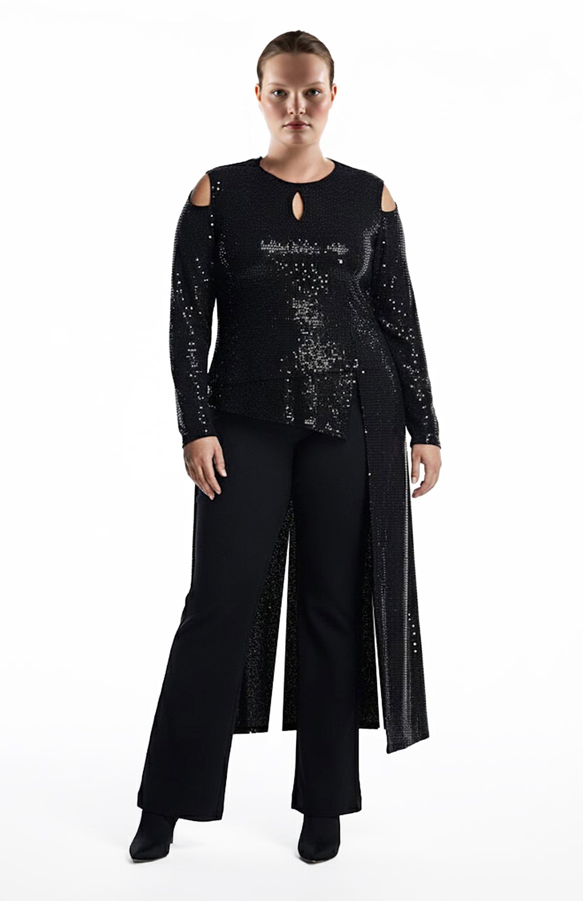 Indulge in the elegance and allure of the Cypreea plus size sequin top—a stunning piece designed to command attention. Its geometric tailoring and striking silhouette ensure you stand out. With its timeless design, this top offers endless styling possibilities—whether dressing up for a formal occasion or aiming for a more casual look. Fully lined and featuring a back zipper opening, the Cypreea plus-size top guarantees effortless and comfortable wear. Pair it with pants or a long skirt to add a touch of sophistication to any ensemble.
