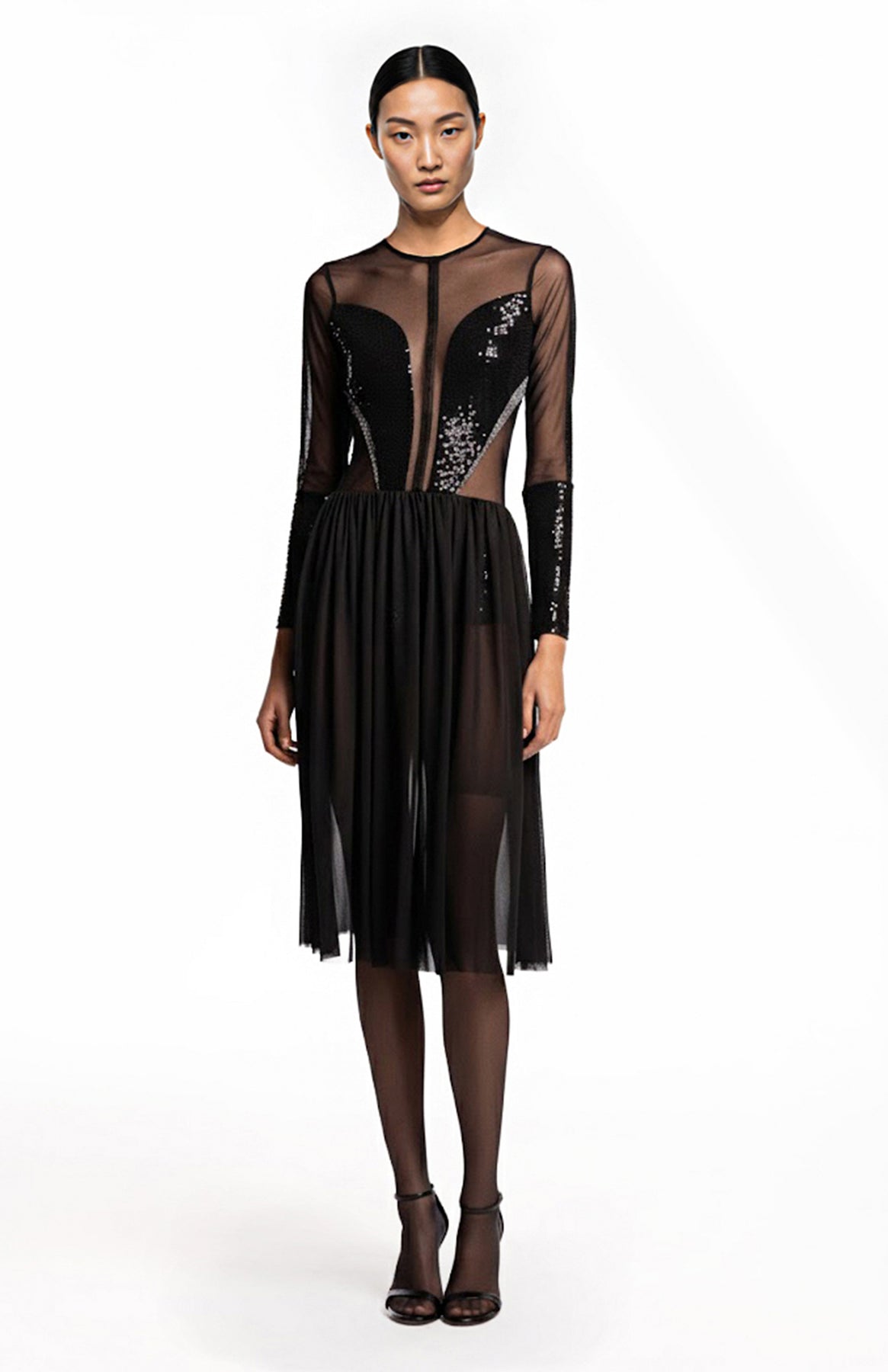 sheer long sleeve dress