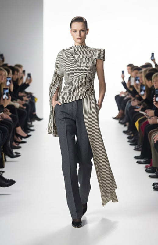 A study in modern elegance, the Anubis Asymmetrical Stripe Top is designed to make a statement. Its dramatic draping, single asymmetrical sleeve, and flowing tails create a striking silhouette that commands attention. Thoughtfully constructed with a side zipper and back neck keyhole for effortless wear, it transitions seamlessly from day to night. Pair it with our Odysse Dress Pants for a sophisticated look or style it with Norias Jeans and flats for understated chic.